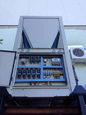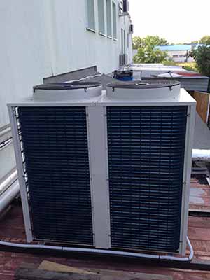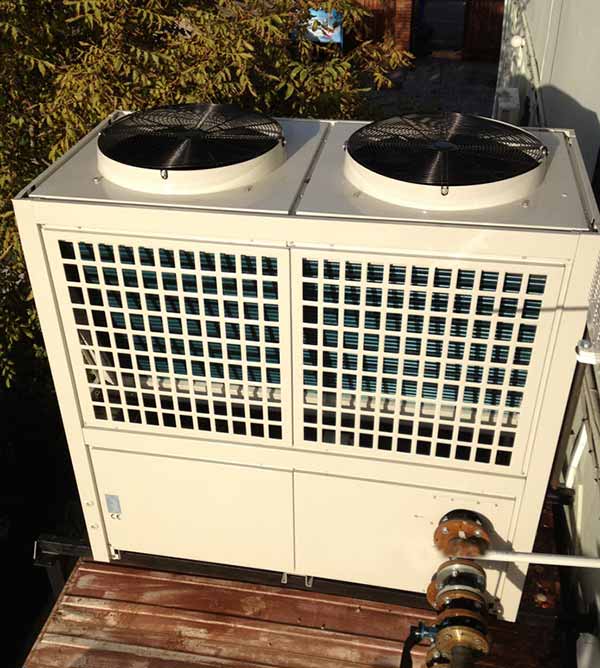 LSQ66R4 levegő-víz monoblokkos ON/OFF rendszerű ipari hőszivattyú. 4 db Hitachi kompresszor és 69kW fűtőteljesítmény